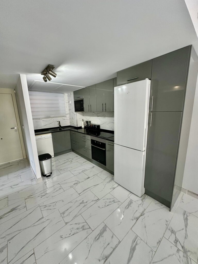 L’appartement est doté d’un grand solarium avec vue sur la mer .